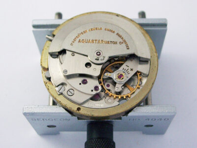 As you can probably tell by the amount of dirt around the caseback, this watch hadn’t been opened for many years and proved difficult to get apart. Thankfully, I have a set of Roamer case openers with exactly the right sized dies which helped immensely.