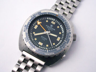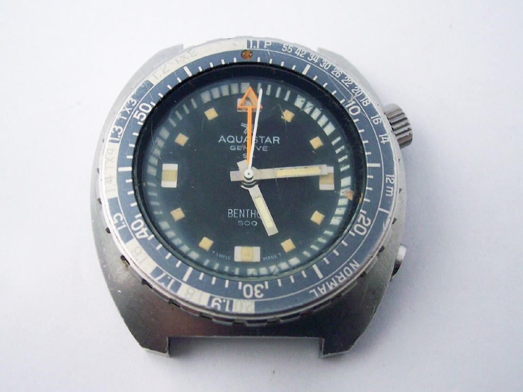 I don’t get much time for my own restoration projects these days, but an opportunity came along to buy a watch that I couldn’t miss, this 1970’s Aquastar Benthos 500 with rare decompression bezel.