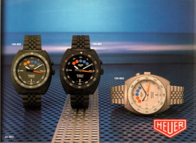 … and in the 1970’s, Heuer went on to develop its own range of sailing timers and continued to offer a mechanical timers in its line-up until the mid 1980’s. Here is a picture from a 1980’s Heuer brochure.