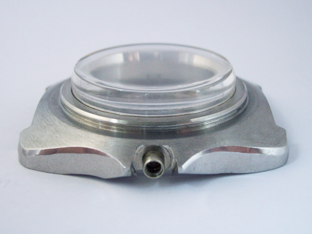 With the case disassembled ready for cleaning it’s worth taking a look at the crystal, ‘top hat’ in profile and super thick, it protrudes 3-4mm above the bezel. Made from acrylic it’s not uncommon to see these crystals with significant dents around the edge, but this one was still in excellent condition and just needed a light polish to remove a few surface scratches. The case is attractively shaped and finished with a mix of brushed and polished surfaces.