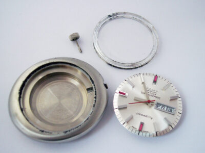 The watch arrived in near perfect condition (apart from the crystal obviously!), the dial and hands were flawless – note the baton jewels on the 6,9 and 12 hour markers, and the case still had its original protective blue wax in the engravings from when it was made – a true NOS (new old stock) survivor.