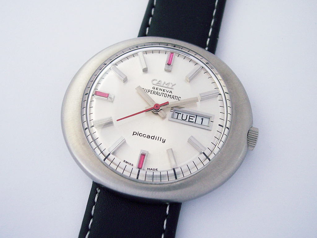 When it comes to watch design, did they have all the fun in the 1970’s? Here’s another beauty from that era, the Camy Superautomatic Piccadilly.