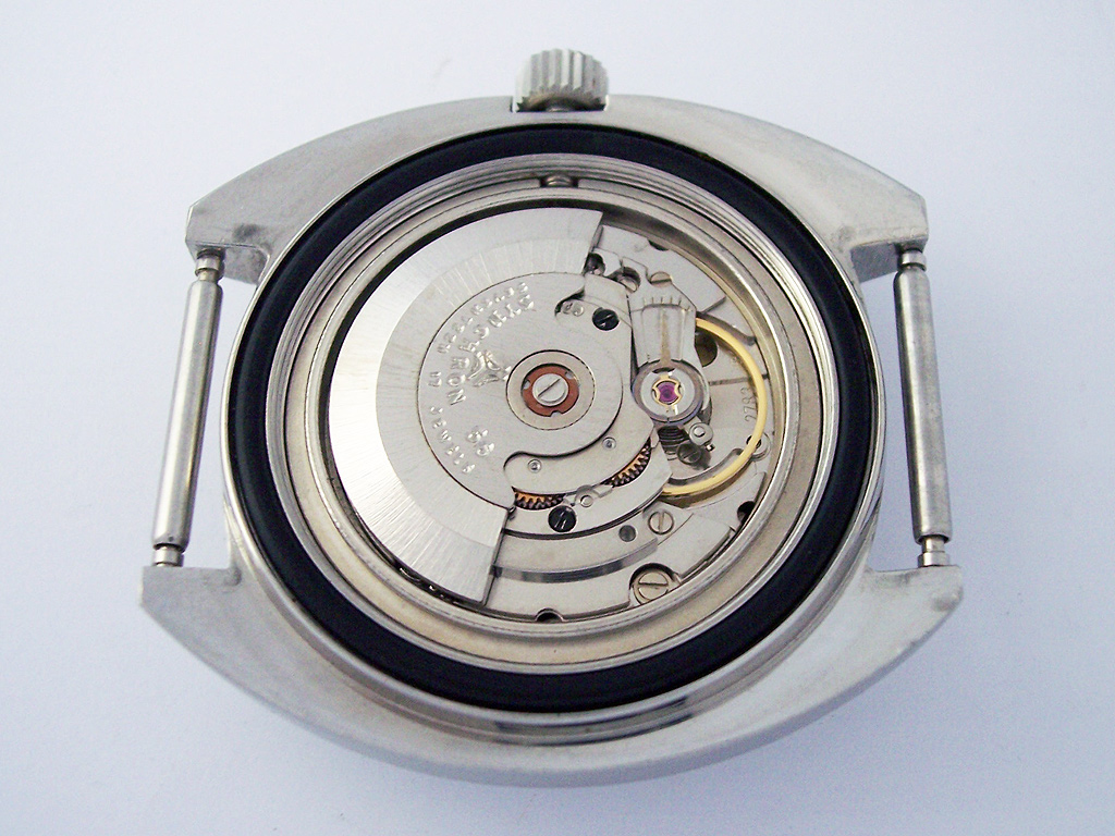 The resulting watch was undeniably fit for purpose and included a number of distinctive features; a bright orange dial and contrasting black hands as this was thought to be more visible at depth, two scales on the bezel (the traditional dive timer on the inner scale and a decompression scale on the outer) and also a flexible beads-of-rice bracelet with a spring loaded extension on the clasp allowing the the watch to be worn over a wet-suit.