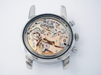 The movement inside this watch is the ever popular Valjoux cal. 72. The one in this watch, although it hadn’t been serviced for some time, was still in good condition and needed no more than a routine service this time.