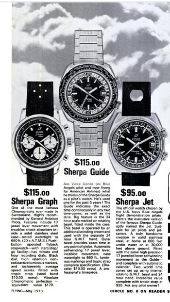 The Sherpa name is synonymous with Enicar who first registered the brand in 1956. Using prominent mountain climbers, adventurers and sportsmen to promote the brand, Enicar used the Sherpa name for many years, releasing more than a hundred different models in total. With the now widely recognised Sherpa-Dive, Jet, Guide and Graph sub-brands, the range covered a lot of bases and proved very popular.