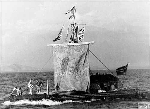 On April 28th 1947, Heyerdahl and a crew of five set sail aboard KonTiki attempting to cross the Pacific Ocean. After 101 days and a journey of over 4,300 miles the raft crashed into a reef on August 7th off the Tuamotu Islands in French Polynesia. The crew all survived, and the adventure declared a success. (See here for more information).