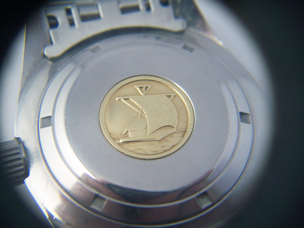 On the caseback of every KonTiki model is an image of the KonTiki raft with the Eterna logo on the sail. Being a much softer metal than the stainless steel back, the medallions can wear smooth with extensive wear, and that is the case with the watch in this post.