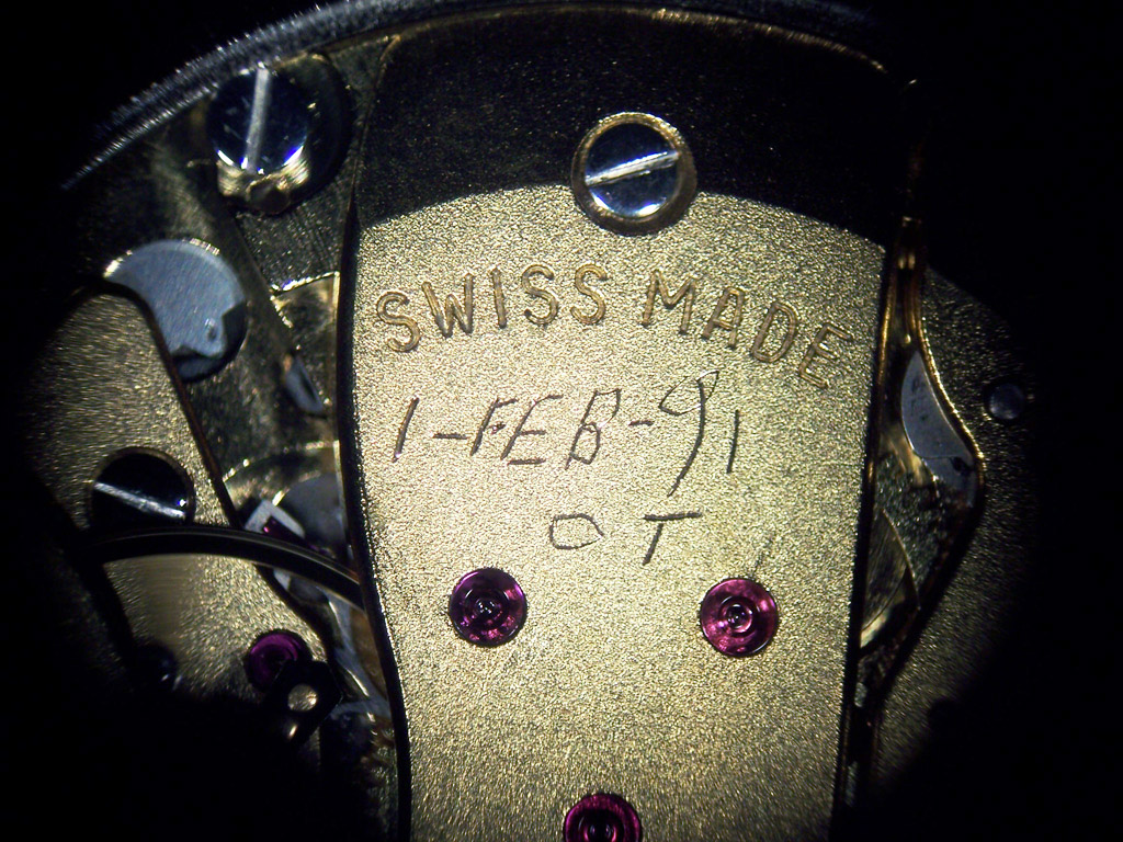 A service mark from February 1991. You often see service marks scratched into the caseback which is bad enough but why any watchmaker would do that directly onto a bridge I’ve got no idea…. if this was horological X-Factor it would get three “No’s” from three me’s!