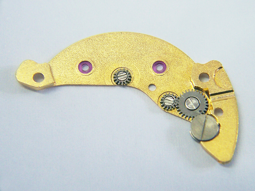 Though the watch was in decent cosmetic condition on arrival it was a poor runner and had a problem with the date function. When looking over the movement I spotted that there were some marks on the train bridge and under the microscope this is what I found…