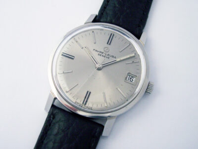Inside is a Favre-Leuba cal. 259, a 17 jewel, in-house, manually wound calibre with a beat rate of 18,000 bph. Derived from the FL cal. 251 which was first introduced in 1962, the cal. 259 featured some technical improvements and also added a date function.