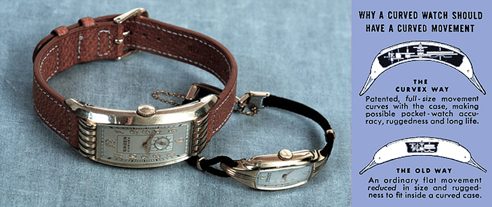 Introduced in the 1935, the Curvex was the first watch with a curved movement to better match the profile of the wrist.
