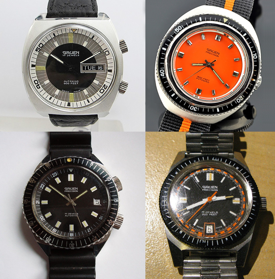 The company eventually found a new owner based in New York and mechanical watches were manufactured again under the Gruen name. As well as ‘Precision’ dress watches, several diver’s watches also were produced. Here are a few more examples.