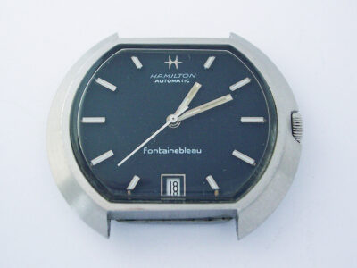 Named after Chateau de Fontainebleau, located 45 miles south of Paris, Hamilton’s Fontainebleau range featured some of their more eye-catching models. Produced in the late 1960’s and early 1970’s the range featured oval, square and wedge shaped cases, with hidden or recessed lugs, resulting in a somewhat quirky line-up which made them stand out from the crowd. (I wrote about another watch from the Fontainebleau range, the Odyssee 2001 several years ago which definitely ticks the ‘quirky’ box, here is a link if you would like to read it.)