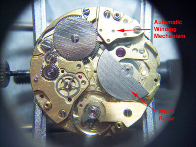 Originally developed by Buren, the main benefit of the micro-rotor system is that the winding mechanism is integrated into the main body of the calibre keeping the height to a minimum, making them ideal for dress watches. (For more information on micro-rotors see here).
