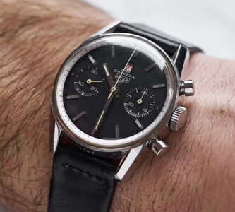 The Jaquet-Droz name was resurrected in the 1960’s by a consortium who produced a range of chronographs and diving watches. Unfortunately, the company was hit by the quartz crisis and closed before it really got started. (Watches from this period, like the one in this post, can be recognised by the arrow logo.)