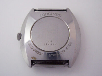 The movement inside is a Longines cal. 503, an automatic calibre with a beat rate of 19,800 bph and a limited quickset for the date. Although it bears all the hallmarks of an in-house Longines calibre, it is actually a calibre designed by Record, the cal. 1958. Longines used the Record 1955 and 1958 calibre designs for their entire cal. 50x range after acquiring the company in 1961.