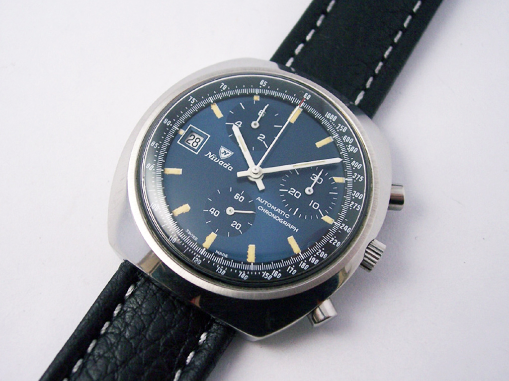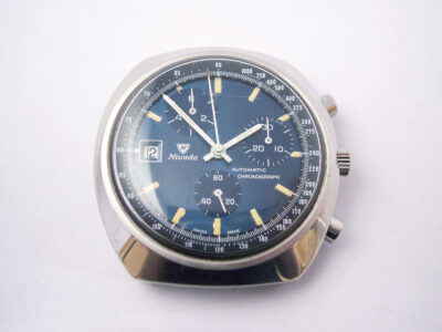 Far from being what you might consider a watchmaking heavyweight, Nivada still had a broad range of watches with interesting calibres. Regular readers will know that I’m a fan of Nivada watches, and this chronograph is one of the most peculiar models I’ve encountered so far.