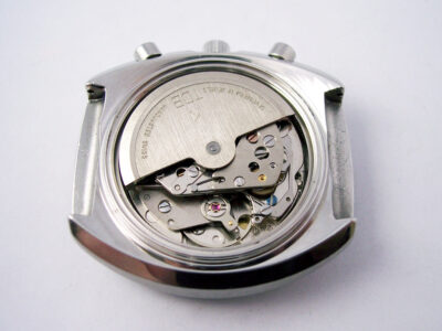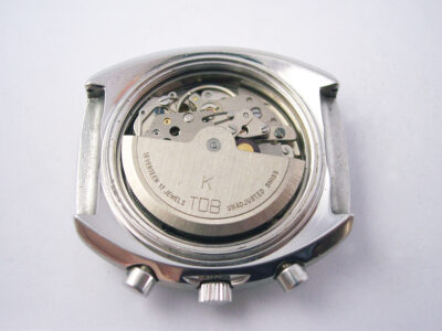 When the watch arrived, it was running but the chronograph wasn’t working correctly. Thankfully no parts were broken as finding replacements for this one would have been difficult. The problem was that the mechanism had been assembled incorrectly, so after a service and some head scratching to get it all back together again, we were back in business.