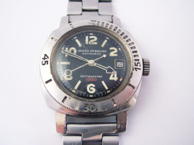 Watches with high depth ratings were still in their infancy in the early 1960’s and manufacturers were just starting to introduce “extreme diver’s watches” into their model ranges. I’m sure Nivada Grenchen would have liked to have claimed the first 1000m rated watch but that title is thought to have gone to Sandoz who debuted a 1000m watch – using exactly the same case as the Depthmaster – in June 1963.