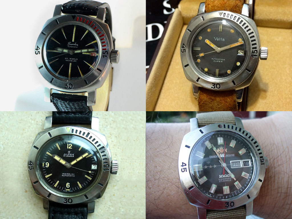 Sandoz wasn’t the only company to share the same case with the Depthmaster. While the manufacturer of the case is unknown it was used far and wide during the 1960 and 70’s with many companies producing very similar models; Jaquet-Droz, Alpha, Le Phare, Orient, Sylvana, Festina and Vetta to name but a few.
