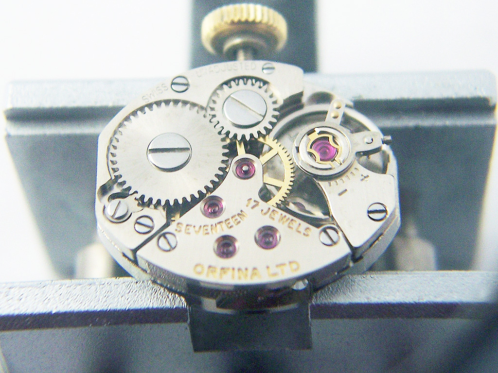 Inside is an Orfina branded A. Schild cal. 1977. The watch arrived fully wound but showing no sign of life, this time the problem being a broken escape wheel pivot. With a new part sourced, along with a new mainspring, the rest of the movement service was straight forward.