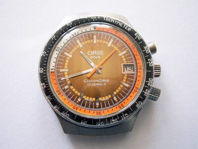 When introduced in 1970, the ChronOris was the first Oris watch with a chronograph function. I was very surprised to find this one locally, and it’s the only one I have ever seen with an orange dial.