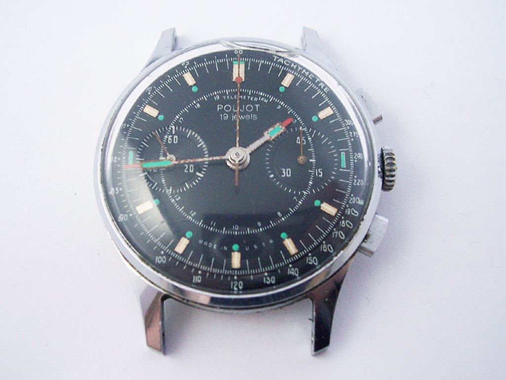 You will see these watches branded either Poljot or Sekonda and they were produced with either a black or a white dial. (Sekonda is actually a British company that was set up in 1966 to distribute Russian watches in the West).