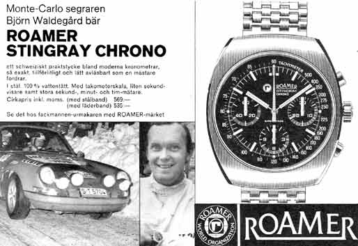 While researching this post I came across a Swedish advert showing Björn Waldegård – two time winner of the famous Monte Carlo Rally (1969 & 1970) wearing a Stingray chronograph. I wonder if he was wearing one during the races?