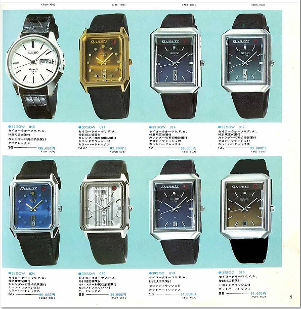 To finish this rather lengthy post (congratulations if you’ve made it this far!), I’ll just say that these watches were produced in a variety of colours during their short production run. Here is a picture from a Japanese catalogue showing the full range.