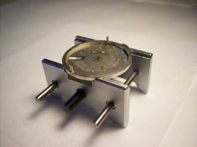 As I’ve described in a previous post, it’s possible to replace the feet without soldering on this kind of dial, as the old ones can be drilled out and new ones can be made and fitted relatively easily.
