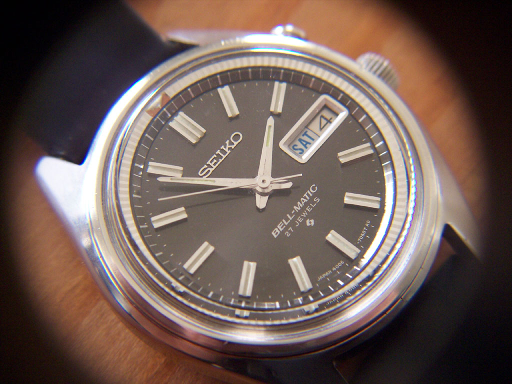 I also found that the hands had been installed without the proper tools at some stage and were bent in all directions and it took quite some effort to straighten them out. Bent hands are always a problem but especially so with Bell-Matics. When the alarm triggers, the hour wheel rises, reducing the clearance between the hour and minute hands. If the hands are in poor condition (or have not been set correctly) they will touch when they pass, either stopping the watch or worse, scratching the hour hand on the underside of the minute hand.