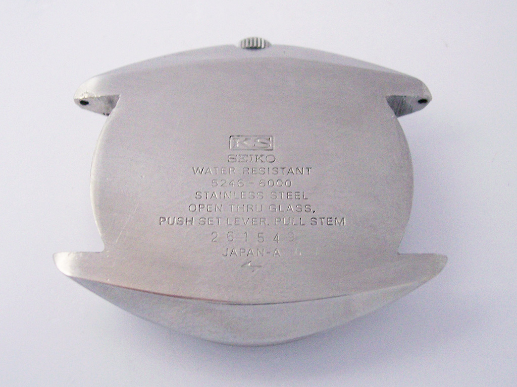 The subject of this post is arguably the best watch that the Daini factory produced, but before getting into what’s inside, let’s have a closer look at the case. Turning the watch over you immediately know this is an unusual model as it is completely smooth; no caseback or medallion, just a simple KS logo, model number and opening instructions.