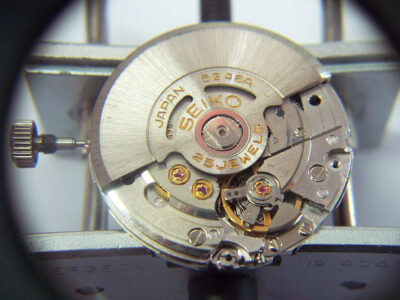 The architecture is unique to the 52xx family, it shares no parts with other lines. The automatic winding mechanism is typical of the higher end Daini calibres using a roller system rather than the magic lever used on lower quality calibres and there are also diafix installations on the escape and third wheel pivots to prevent oil contamination and promote a more stable rate.