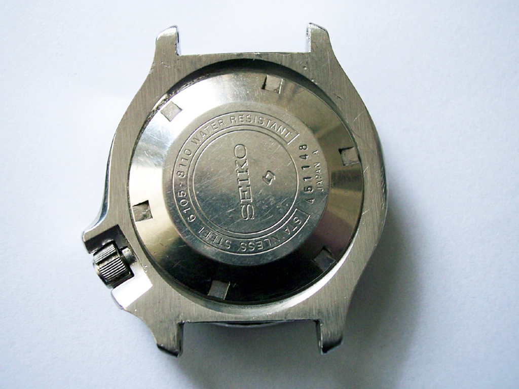 Giving it a quick look over on arrival I presumed it was the internals from a 6105 diver transplanted into a newer case, so I set it to one side for attention later. When I came back to it and turned it over I was very surprised to see the straight brushed finish of a regular 6105 case on the back.