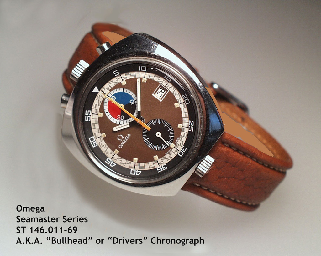 It won’t come as a major surprise, but these watches are called ‘Bullhead Chronographs’ because with the crown and pushers on the top of the watch rather than the side, it makes them look like, well… like a bull’s head! The Bullhead design first appeared in the 1960’s, but it really took hold in the1970’s with some of the major manufacturers getting in on the act, Omega being one of them.