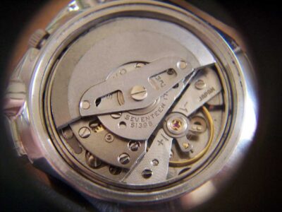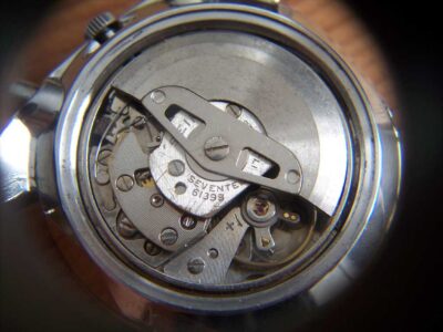 A look inside the caseback shows a few scratches on the winding bridge and a bit of wear from the rotor but little else to worry about. The balance staff and hairspring were still in perfect shape and the reset snapped back to zero, always a great start.