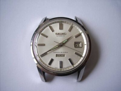 The ageless design of Seiko’s older dress watches is always appealing, and the full day display at six on the dial is a nice feature. This one did run on arrival… kind of. The second hand moved as it should, but the other hands stayed stationary.