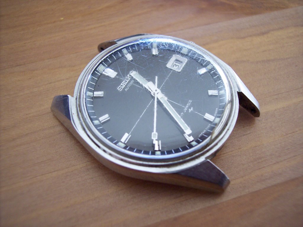 Another local find, this time a large cased ‘diver-style’ dress watch from 1973, fitted with a 7005A movement. Under the cracked crystal and all the dirt, it looked good.