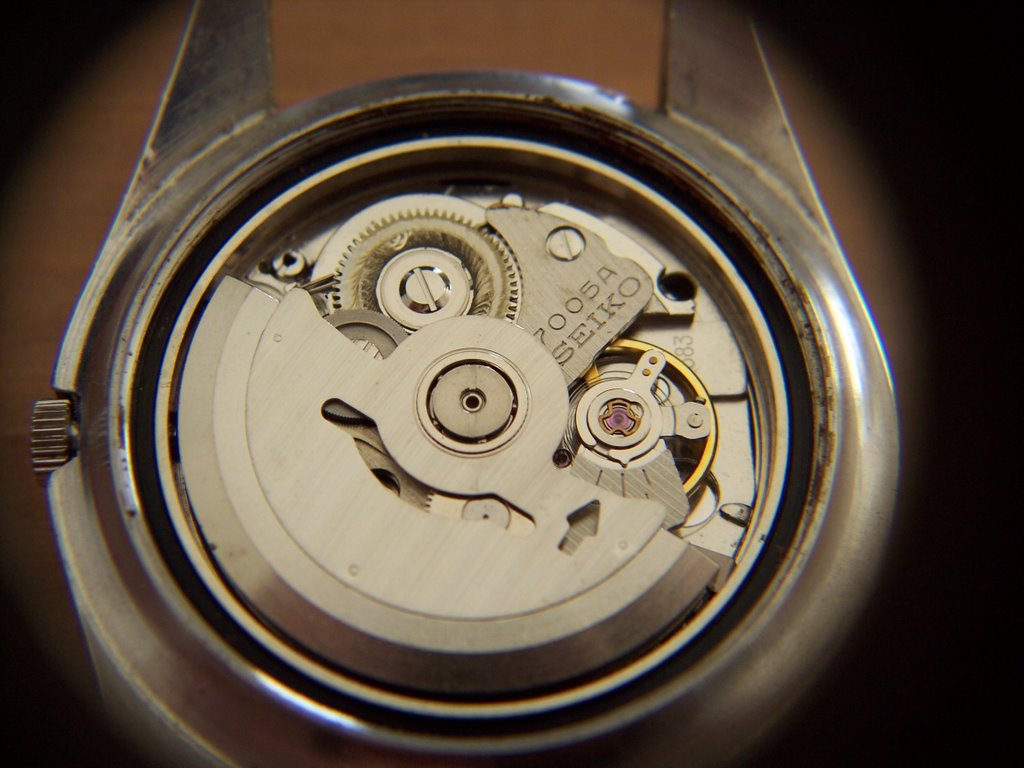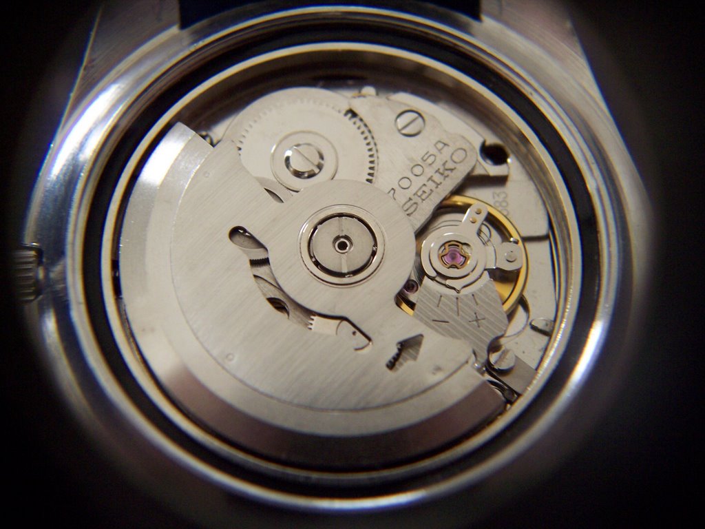 The 7005 movement is one of my favourites, it’s an exercise in simple but effective design. As it’s a date only caliber, the keyless works can be cut down to only 5 parts. The watch had obviously been sitting around for some time, notice the old congealed oil that had gathered under the calendar ring, a sign of previous over-oiling.