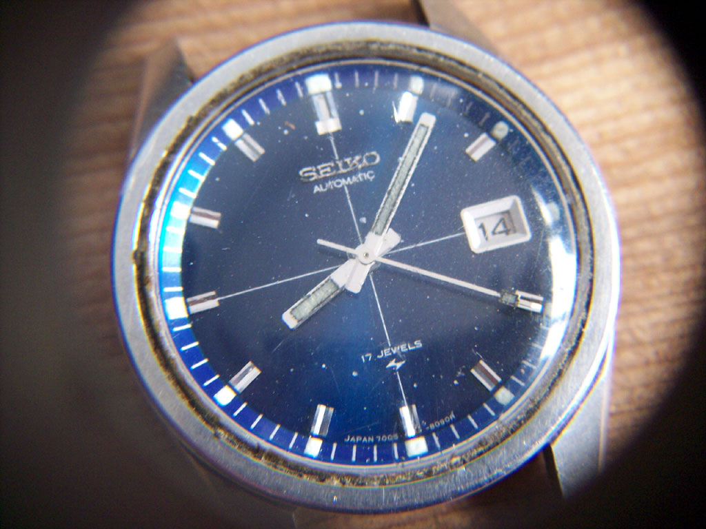 However, the “blurry eBay picture lottery” didn’t quite pay off this time, as when the watch arrived I saw that moisture had badly corroded the Seiko logo, lume and hands. On the plus side though, the dial, the hour markers, and the chapter ring had all survived.
