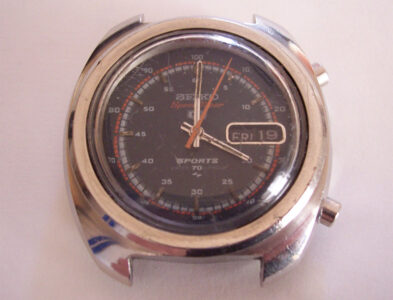 Something a little different this time, one of the 71xx series chronograph models, this one from 1971. It’s safe to say that this one was in a bit of a state; it didn’t run, the lume was a mess and the trashed hands weren’t even a matching pair.