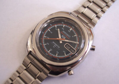 The movement in this watch is the 7017A which, like the 6138/9 calibres, also uses a vertical clutch mechanism to provide the chronograph function. Although the 7017A does not have a minute register, the chronograph operation is very similar.
