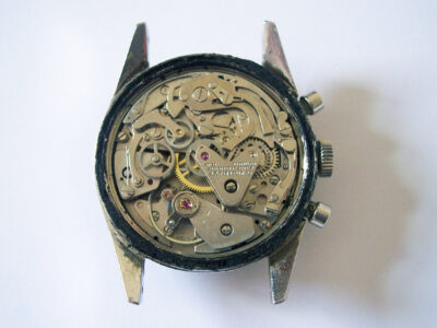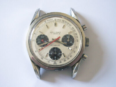 Though not a recognised brand name, I had restored another Welsbro chronograph in the past (see that post here), so I knew that there was a good chance that the movement inside would be of decent quality. When it arrived I wasn’t disappointed, the crystal was damaged and the case had some scratches, but the dial and hands underneath were in perfect condition.