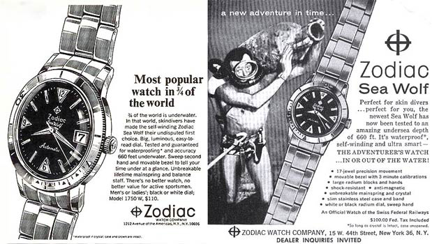 Around 1962 with sales of the Sea Wolf growing, Zodiac introduced a Sea Wolf model with a date, the Datographic and also the first Aerospace GMT.