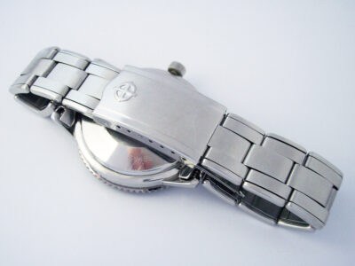 This watch was still fitted with its original, ‘stretchy’ steel bracelet which was nice to see. Each link is spring loaded to provide a comfortable fit both pre and post that “Oh no! I seem to be addicted to ice cream” summer. 🙂
